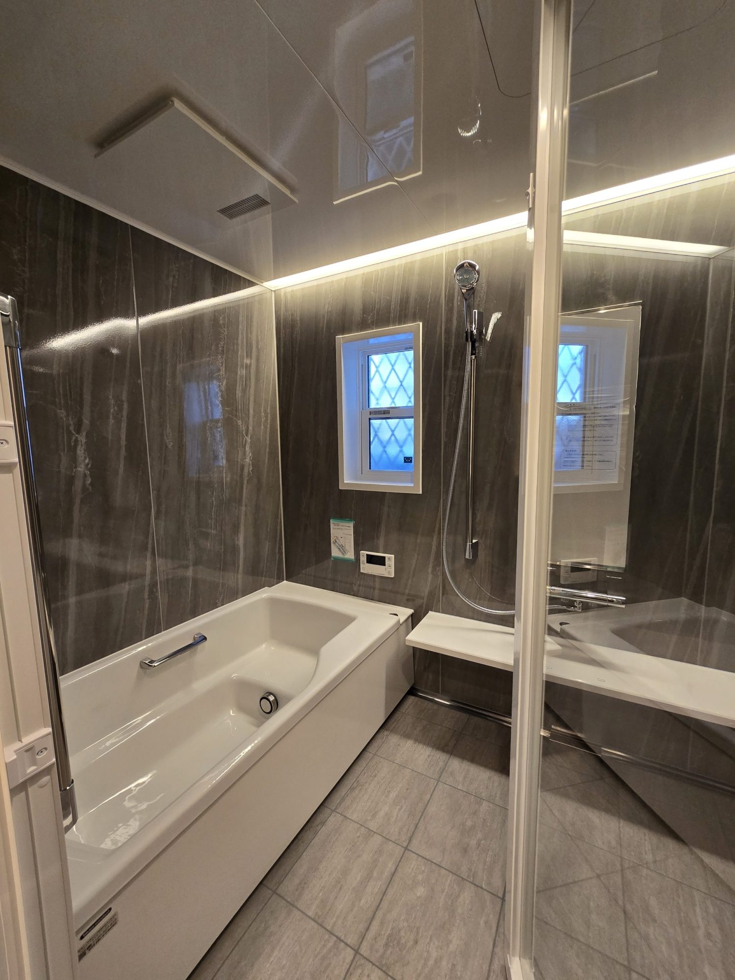 毎日の疲れを癒すバスルームを、より快適で上質な空間へ。高級感のあるユニットバスへのリフォームでデザイン性と機能性の両立を実現しました。