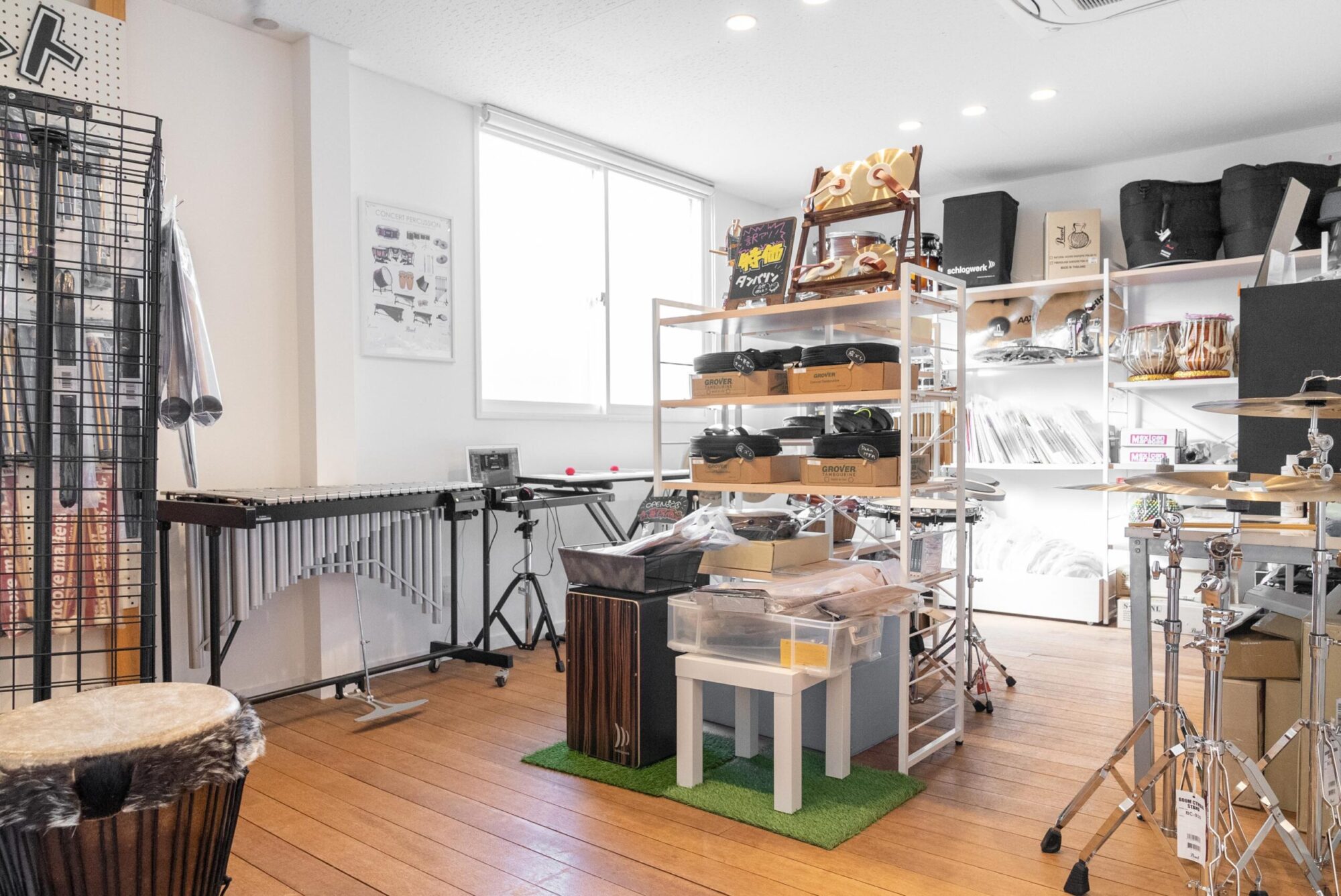 何もなかったシンプルな空間を、打楽器のための場所にしました。