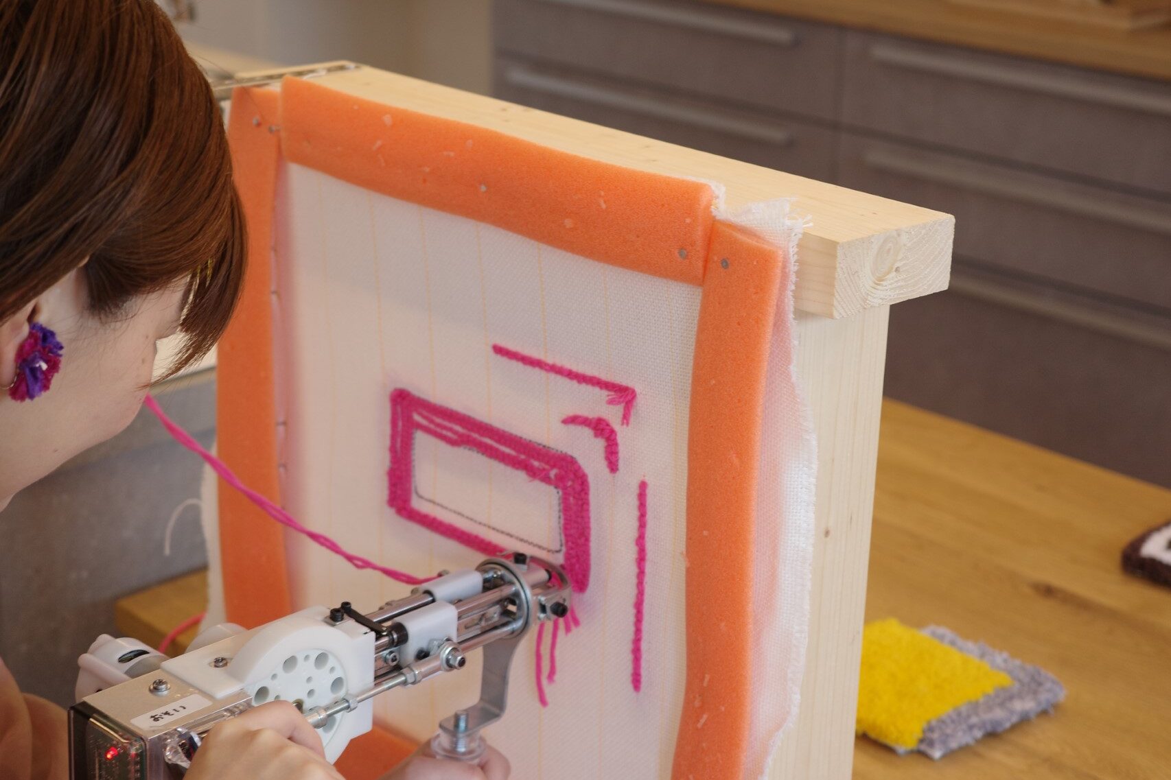 タフティングガンを使って、世界に一つだけの“オリジナルラグ”を制作できる人気ワークショップ。