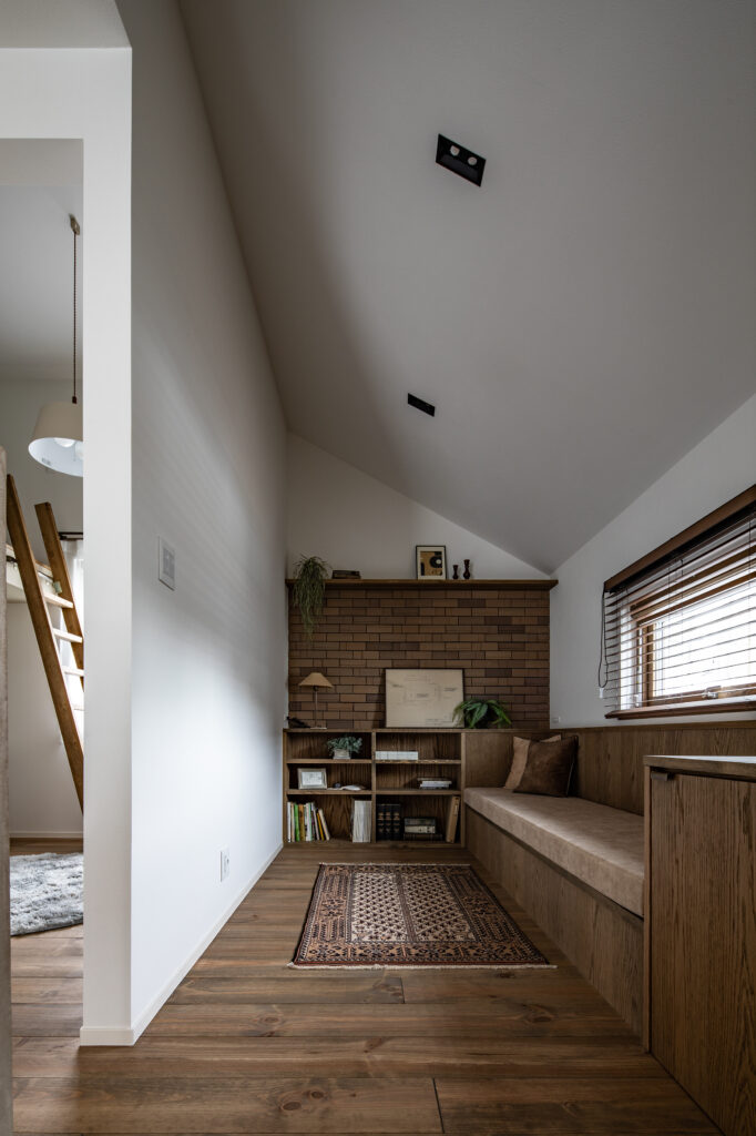 所です。そしてブリックタイルがアクセントの2階フリースペースでも、ゆったりとくつろぐことができ